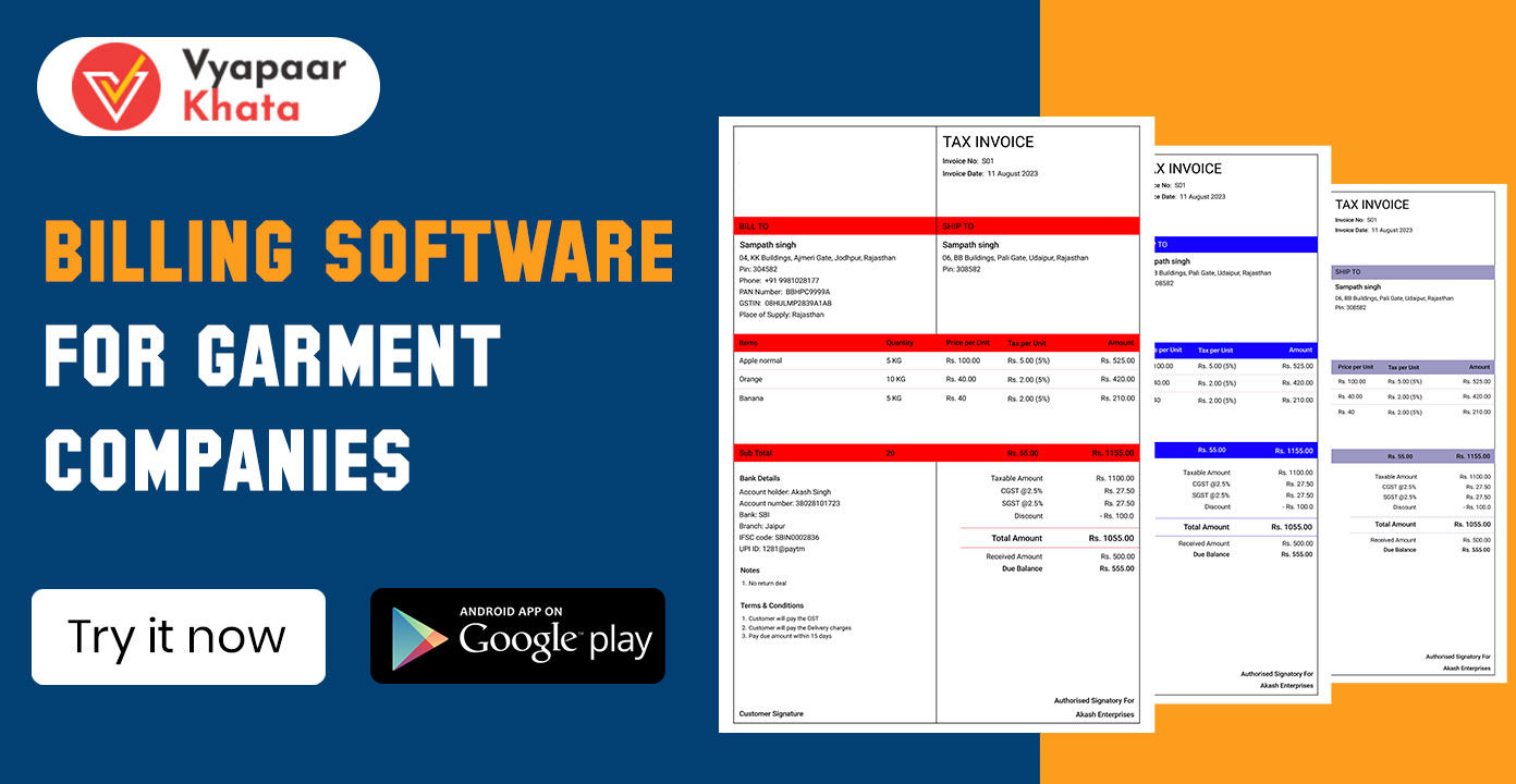 If you are searching for the best billing software for garment companies, VyapaarKHATA offers a powerful yet user-friendly solution designed specifically for MSMEs and SMEs in India.