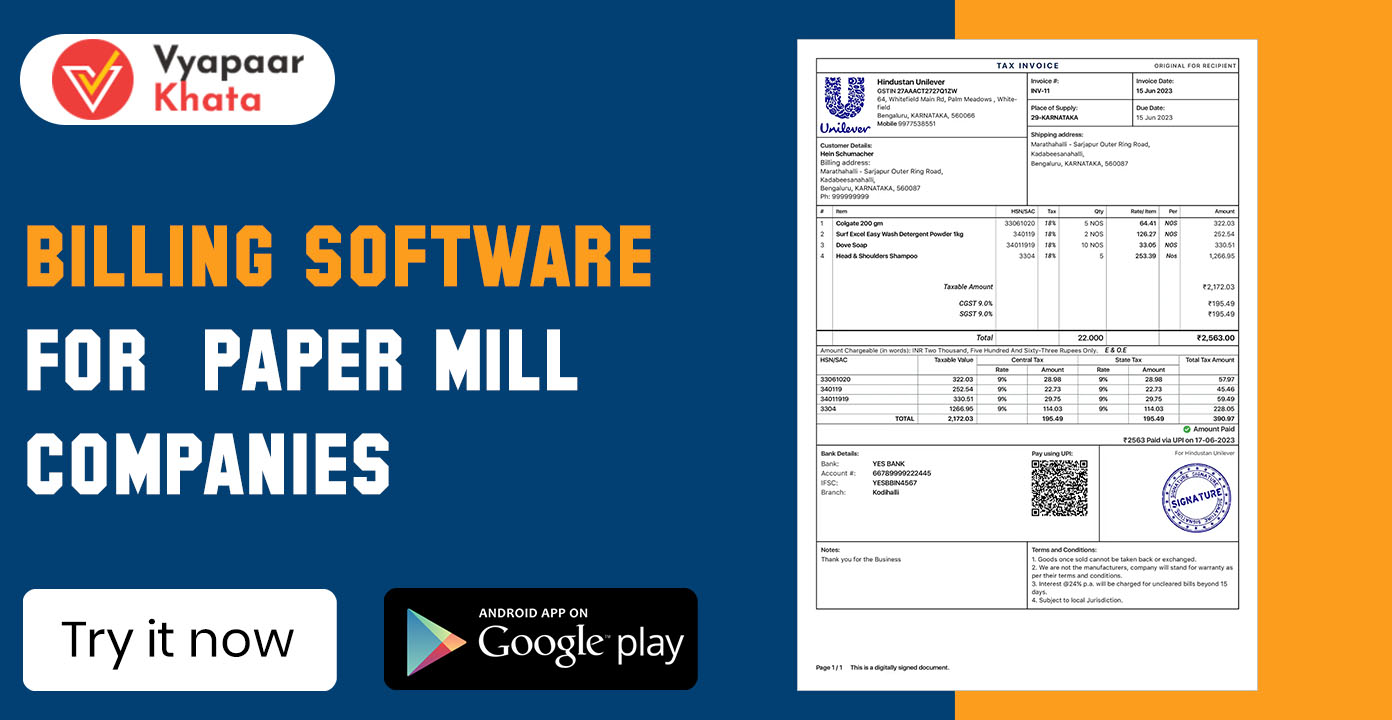 With Vyaaparkhata, paper mill companies can streamline their billing processes, reduce errors, stay GST-compliant, and make data-driven decisions to boost efficiency and profitability.