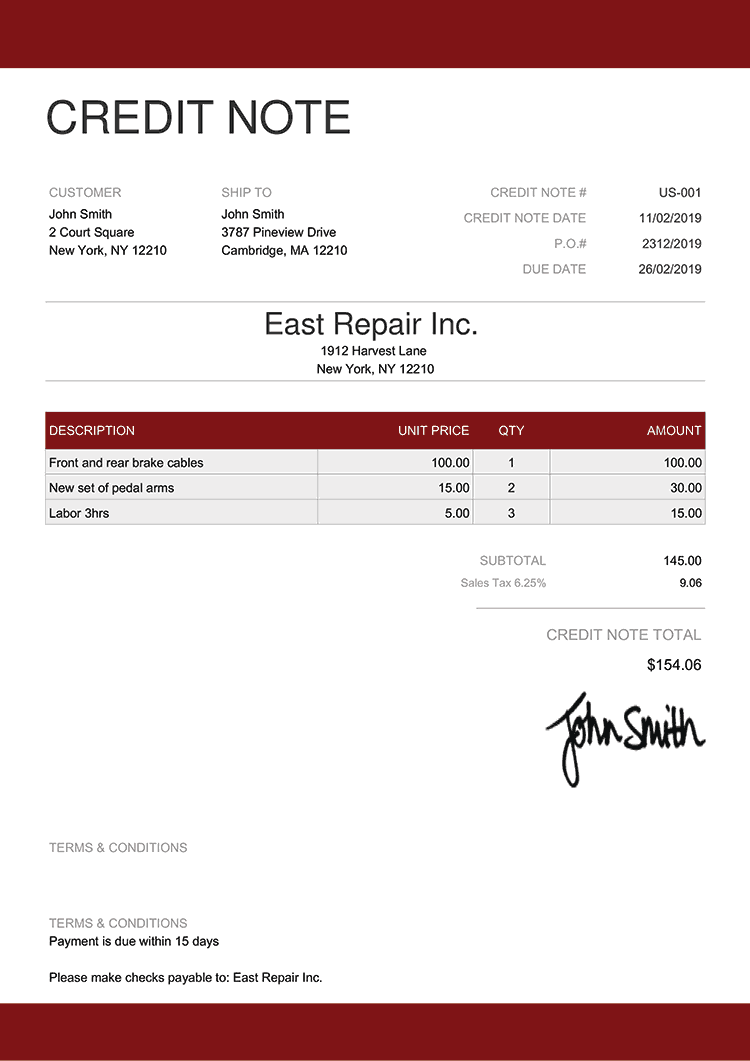 Clearly state the total amount being credited, including taxes if applicable. - Include Taxes and Adjustments