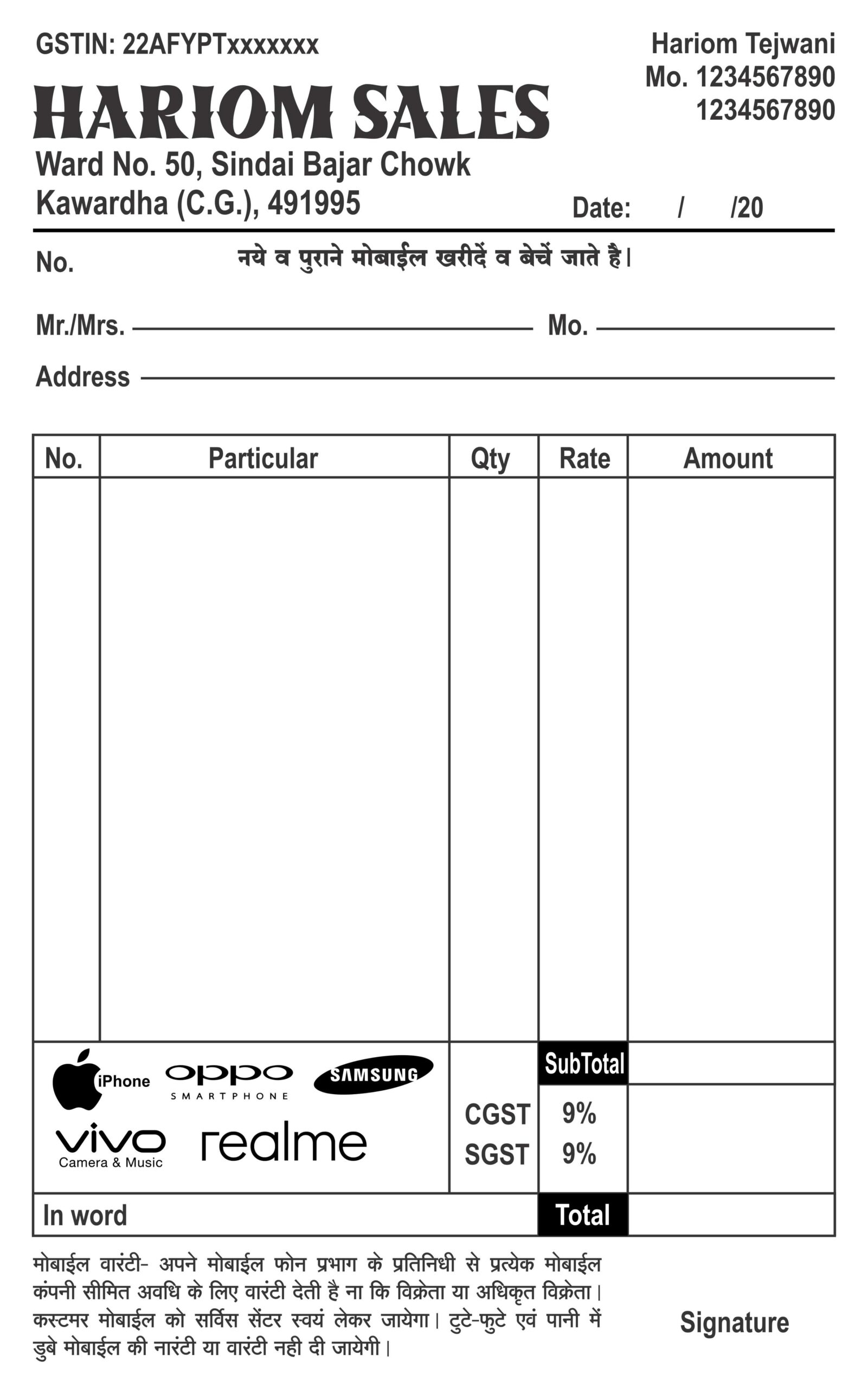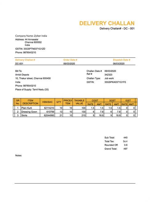 - Delivery Challan – Issued when goods are transported without a bill (e.g., sending goods for approval or job work).