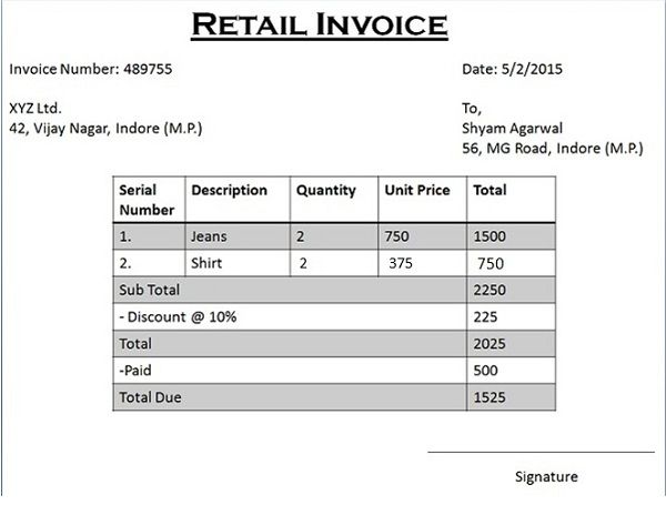 - Retail Invoice: Offers a detailed breakdown of the transaction. This includes the list of products or services sold, quantity, unit price, applicable taxes (like GST or VAT), discounts, total amount, and payment terms. Such details are essential for accounting, tax filing, and inventory tracking.